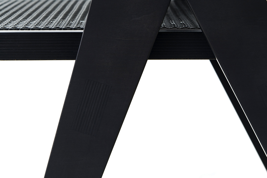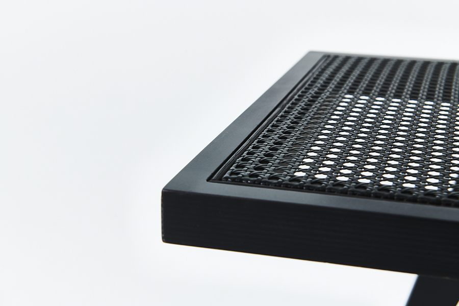 現地で手に入る素材を使い、特別な設備がなくても作れるよう考えられた彼の設計理念をもとに、成形合板とPVCラタンで再構築しました。素朴でありながら、構造の美しさが際立つ一脚です。