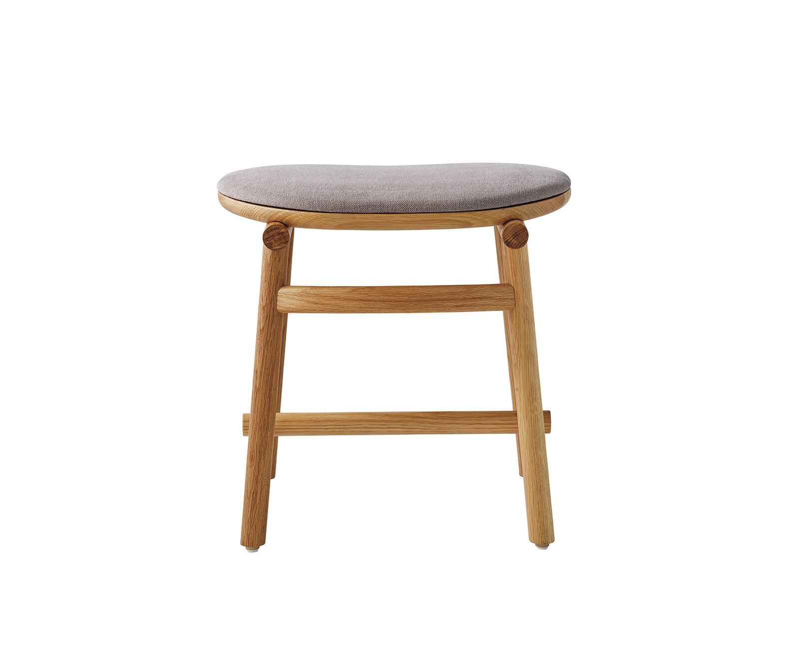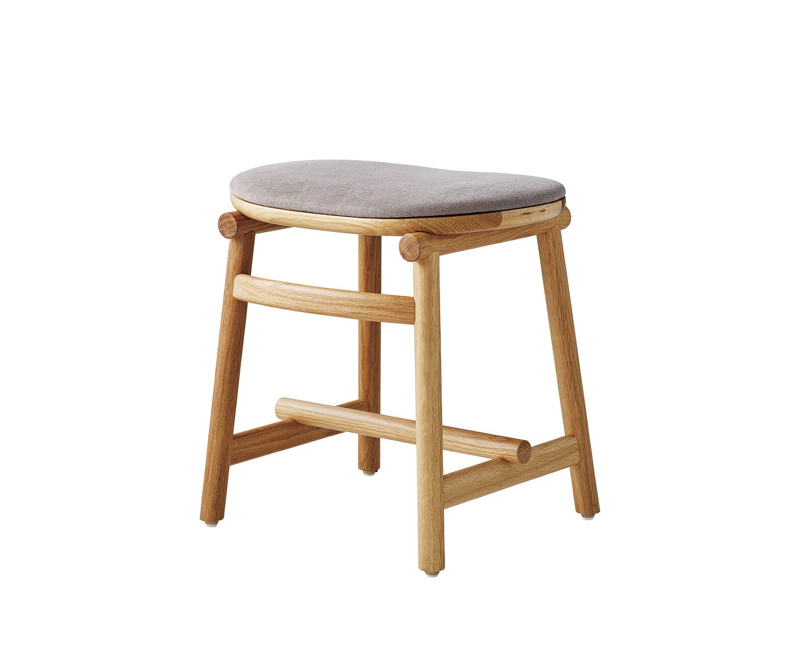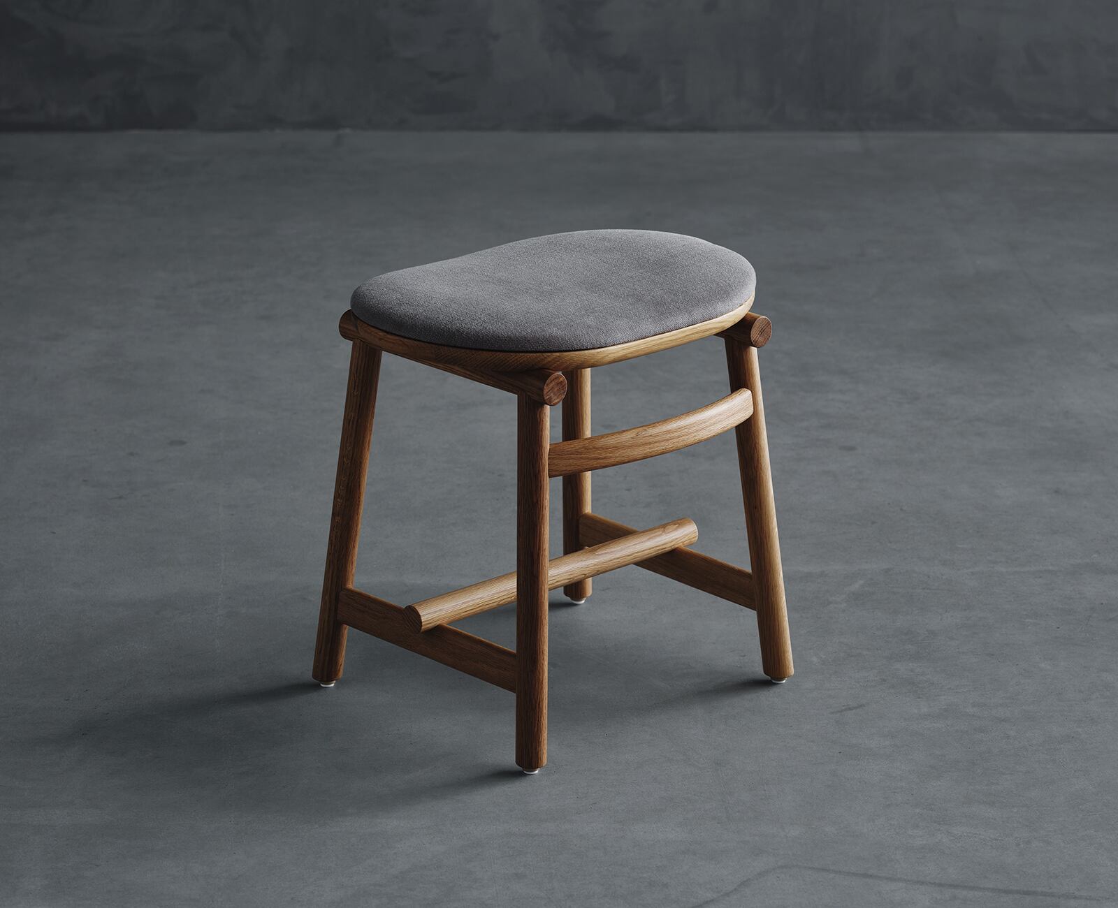 カラーバリエーションは、オーク材の明るさを活かしたナチュラル色と、モダンな雰囲気のブラックの2色。座面は、様々なファブリックを張ることができるウレタンタイプと籠目編みのラタンシートタイプの2種類